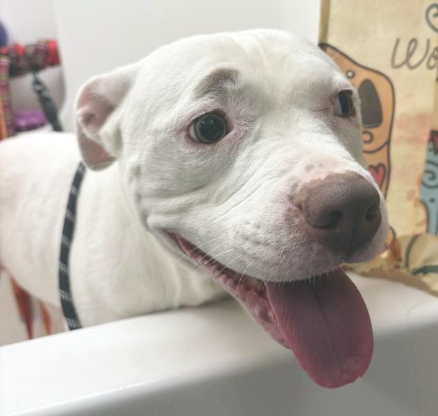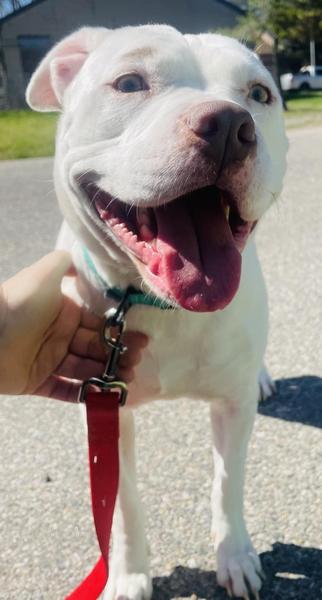Notes: Maybe its Maybelline and MAYBE she is your new best friend! This adorable little Pitty is just the right size, and has a very good personality. She has a calm demeanor and is good for her walks. Maybelline came in with a bit of a skin infection, but with one more medicated bath she should be good as new.