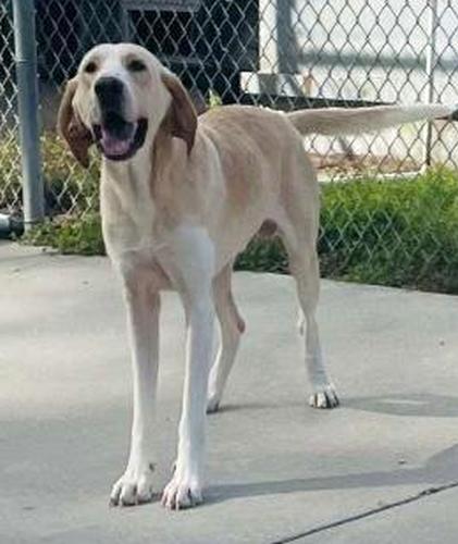 Bronco is a high-energy dog with a big heart and an even bigger appetite. He is very food motivated, which makes training a breeze. However, he is still working on some manners and tends to counter surf in search of snacks, so basic obedience and structure will help him become the best version of himself. He was tested with a medium sized female Hound/Pit mix and responded playfully and appropriately. His social nature suggests he could do well with another friendly, active dog with proper introductions. Bronco is a very nice boy with so much potential and love to give. He just needs someone to channel his energy and set him up for success. Intake Date: 8.27.2025 (Stray) Medical: Heartworm Negative; Vaccinated Bordetella and Distemper; Pending Rabies Vaccination, MicroChipping and Sterilization upon adoption. Adoption fee: $20Adoption fee: $20. We accept cash, check, credit and debit cards.